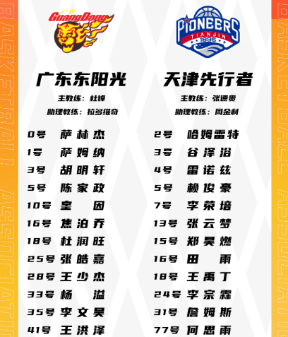 本赛季首次交锋广东客场98-74大胜天津,本场徐杰与林庭谦缺席。首节开局广东4-0领先,雷诺兹上篮命中,王少杰早早身背2次犯规。奎因与雷诺兹对攻一记暴扣,胡明轩上篮得分,詹姆斯三分回敬,广东多点开花一波8-0攻势扩大16-7领先。天津连追4分,焦泊乔精彩暴扣,谷泽浴上篮命中,广东连续造犯规4罚3中,谷泽浴两罚全中。萨姆纳接连两次上篮得分,雷诺兹暴扣与谷泽浴压哨上篮命中,首节比赛结束广东25-19领先天津。